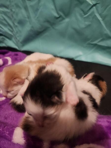 message himalayanmountains about this ad Himalayan curl ragdolls raised in a loving home. They are very healthy and fed the best food with no grain fillers(all meat)These kittens are a very unique mixture of Persian, American curl (mother) and Ragdoll, Siamese(father) Just born on memorial day. They will be ready to go July 29th. Two calicos, one all white, one orange and white. 2 male kittens 2 female kittens . Starting at 500 for the kittens. |