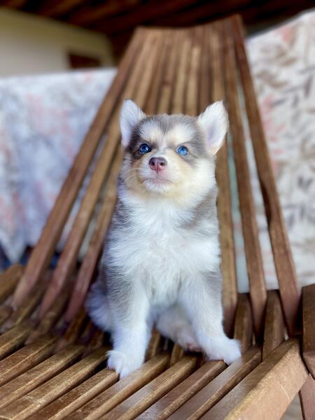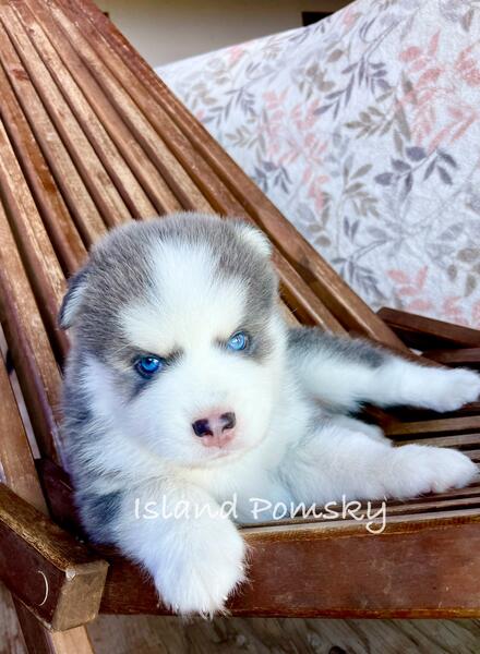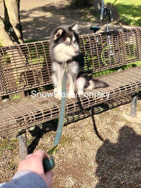 message snwflk9768 about this ad F3 and F2b Pomsky puppies 7 weeks old. Rare blue and white with husky mask. Charting 15-30 lbs. Blue and green eyes. UTD on worming and vaccines. Raised in the home with children. 10 years of Pomsky breeding experience. Wooly and standard coat puppies. Tiny and standard Pomsky sizes available. Good with cats and kids. 5k+ |