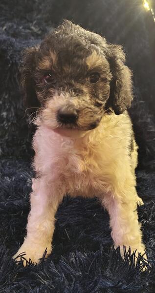 message murphypets about this ad Lloyd is a gorgeous Standard Phantom Parti Poodle.He will be ready to go November 9th. Our pups are raised in home and on our farm around other animals. They leave with first shots done, deworm AKC papers and shot records and some food to get started. Located in Dover Ohio. Call or text anytime 419-279-4195 |