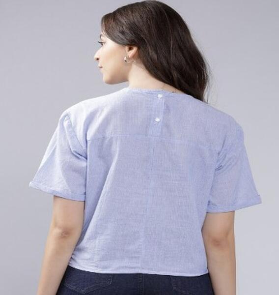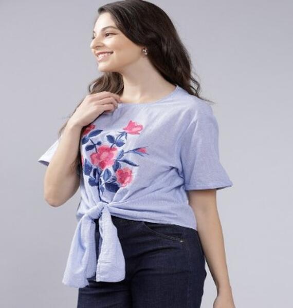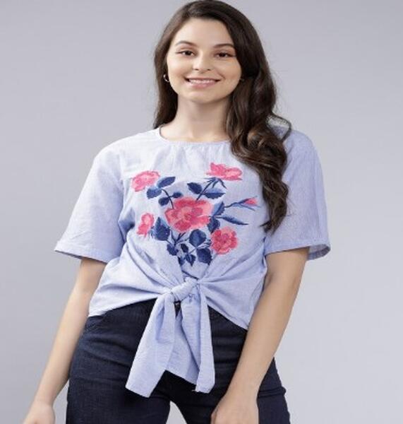 message prerana about this ad Product Highlights Product Code: 12446772 Blue embroidered woven boxy top, has a round neck, and short sleeves Loose Fit The model (height 5'8 is wearing a size S Keep it simple any day of the year with this in-style shirt from Tokyo Talkies. Run errands or walk the dog in this blue top comfortably teamed with black leggings or slim jeans. Material: Pure Cotton Machine Wash httpsmyntr.it/Jy9pVAn |