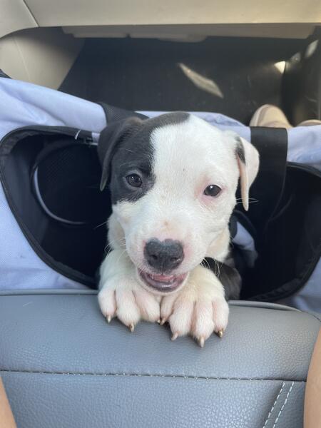 He has not had his shots yet. Hes good with other dogs and cats. Perfect family dog.