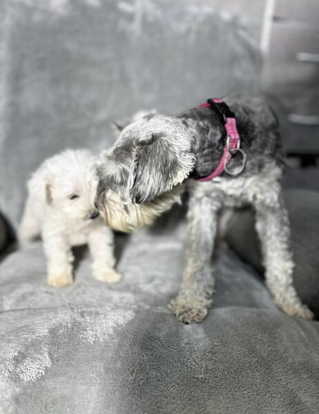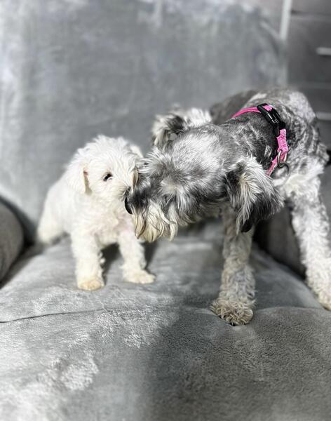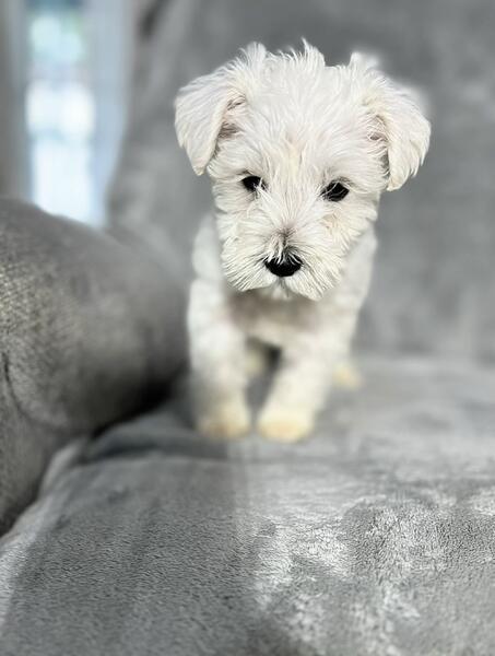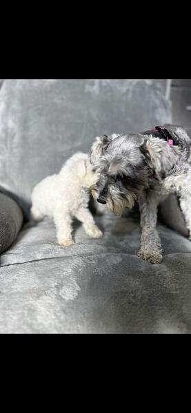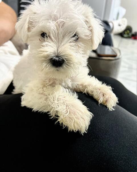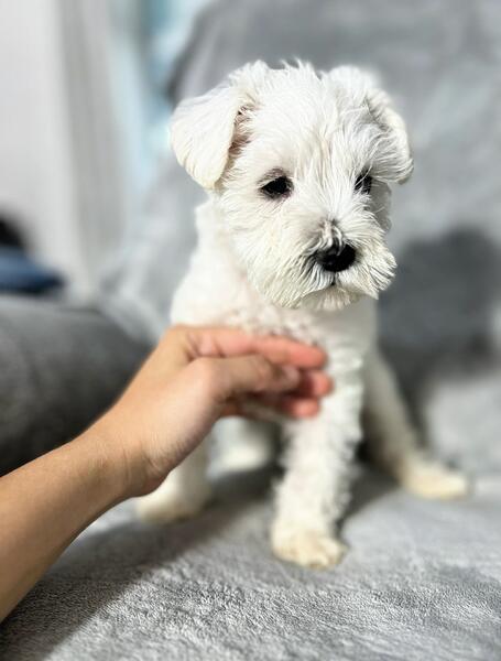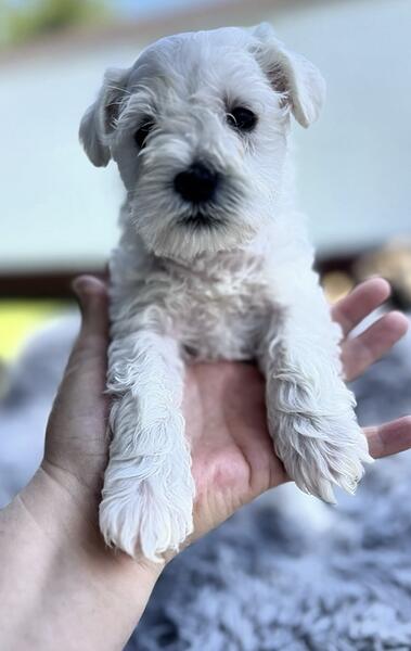 message cynthiaaaa about this ad We have one beautiful white Miniature Schnauzer puppy ready for a loving home! Breed: Full-bred Miniature Schnauzer Color: White (rare and stunning) Age: 8 weeks Gender: Male Healthy First set of shots given Dewormed Raised around kids and well-socialized This sweet pup is playful, smart, and full of personality. Schnauzers are a non-shedding breed, great for families and allergy-friendly homes. Rehoming fee: $800 Located in Mesquite, TX - ready to go to a new home today! Text 972-940-5172 Ask for Cynthia |