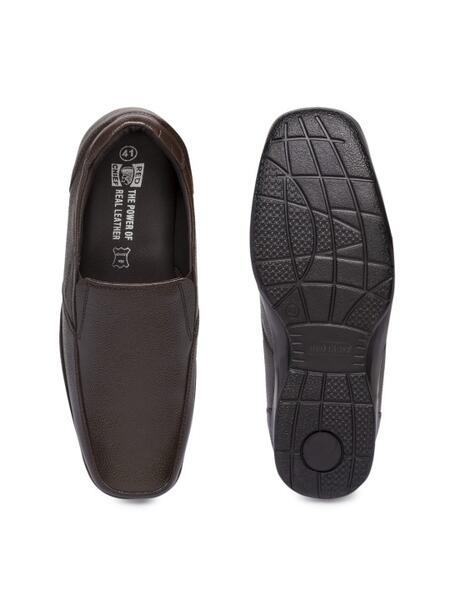 message rohinee about this ad Product Code: 2243762 A pair of square-toed brown formal slip-ons Genuine leather upper Cushioned footbed Textured PU outsole with grooves Warranty: 2 months Warranty provided by Brand Owner / Manufacturer Suave and smart, without looking too formal, these shoes are designed for those who like the understated way of dressing. Featuring a soft leather finish and a padded footbed, this pair of shoes is both comfortable and stylish. Genuine leather Use a branded leather conditioner to clean this product httpsmyntr.it/9LUrn0f |