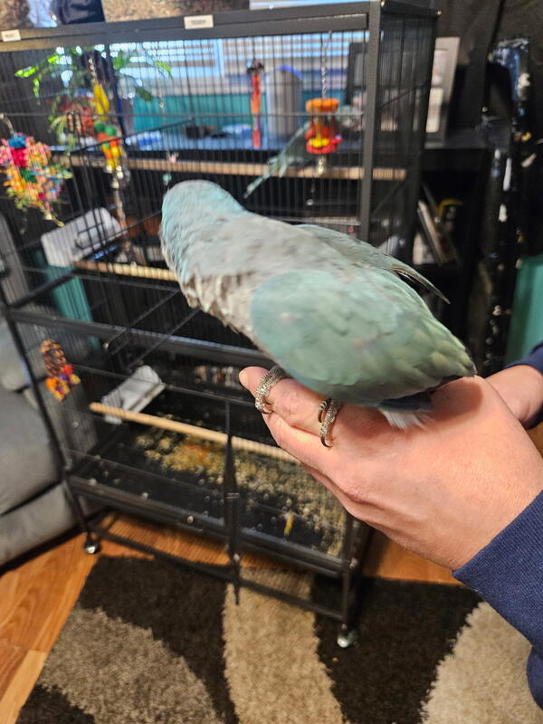 message tnslg5062 about this ad Blue Quaker parrots pair. Not DNA sexed. Breeder says pretty sure male and female. They have very good temperaments. Easy to handle. 4 and half months old. Eating seed pellet medley. Rehiming fee 550 includes both birds cage and 3 bags seed pellet medley. 336 -908-2457 |