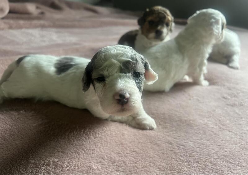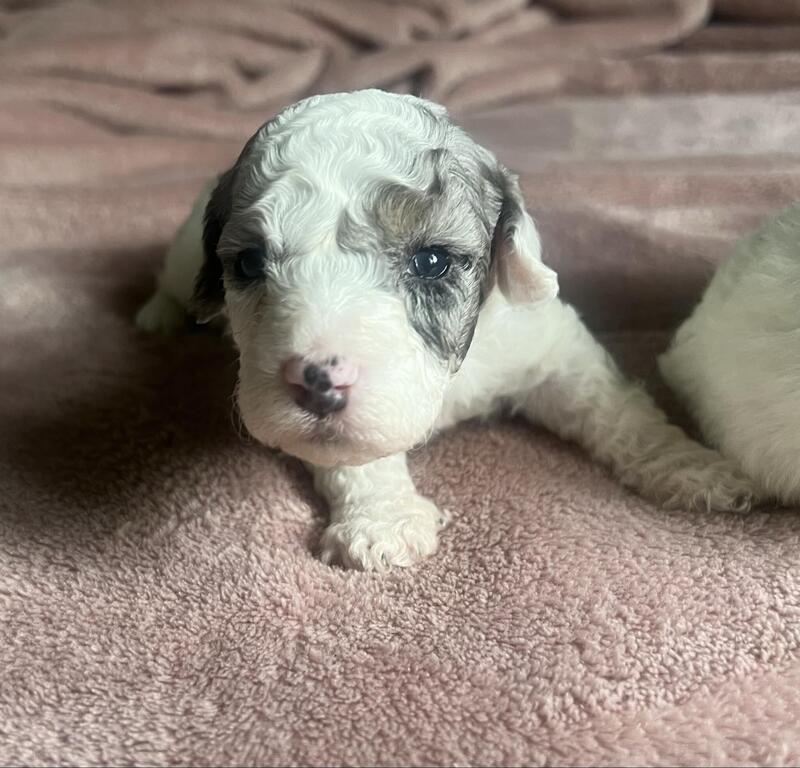 message zzmnzgmqdkw about this ad Has been tested and cleared. Have attached pictures of a previous litter. He is AKC Registered. He is a Merle black, white, brown Throws many colors and blue eyes. Parti colors and Merles If anyone is interested he is up for stud. May consider pick of litter or stud fee. 500 stud fee |