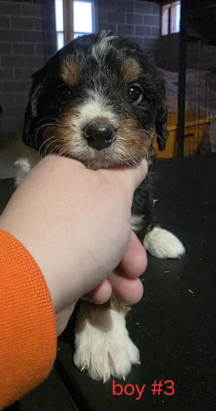 message pups2845 about this ad Posting for a friend He has 4 mini bernadoodle puppies 1 girl (merle) and 3 boys. They were born 11/20/25 They will be 8 weeks on 01/15/26 They go home with vet papers, shots and dewormed Merle is $800 The males are $600 Call or text 234-308-3908 |