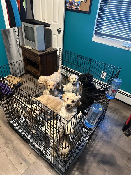 message ptshr5506 about this ad Great family dogs 3 males 4 females born 11/18/24 comes with shots and health certificate Male f1 70lbs Female f1b 55lbs black Not a puppy mill dog this is my dogs one and only litter Ready to go after 1/12/25 call or text Patrick 631-487-6879 mastic beach |