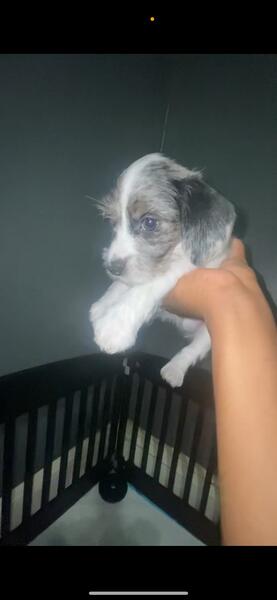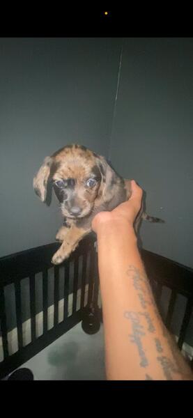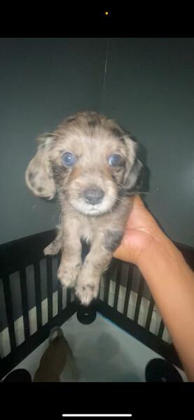 message lolaykash22 about this ad Very cute and playful, well behaved dachshund mix puppies for sale Will stay small and have colored eyes , they are so healthy Dad is under 10lbs and AKC Mom under 14ilbs Will be vaccinated, health checked and dewormed Taking 500 deposits full price from 800-1000 (dapples) Will be ready to go Sept 4th |