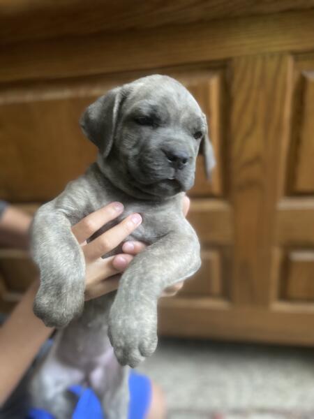 message mareshah85 about this ad Beautiful Cane Corso puppies now available! Born on June 8th 2025. Mom is Blue brindle and Dad is Straw. All puppies are straw gene carriers. We have formentino male and female and blue brindle male and females. Price listed is for pet price/no registration. ICCF registration with full breeding rights is 2,500 All puppies have been vet checked, tails docked, vaccinated and wormed on a regular schedule. No holds unless half the cost of the puppy is made as a deposit. Thanks for looking! Find me on Facebook at Mareshah Veach Robertson or 270-590-0467 |