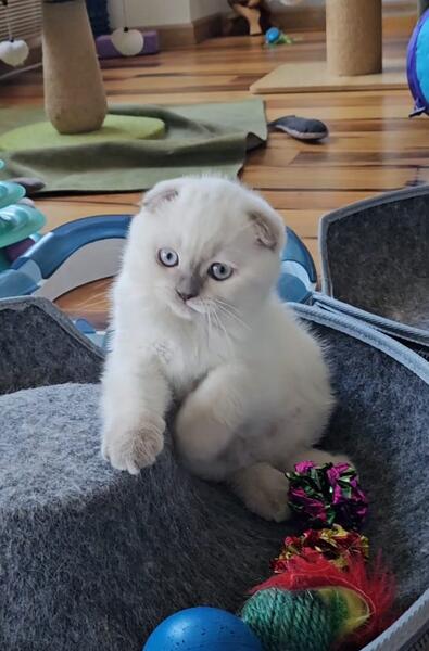 message bundleofjoycattery about this ad Beautiful purebred Scottish Fold kittens, female, born May 22, 2025. One white color-pointed folded ears with blue eyes One lilac-gray straight ears TICA registered cattery, health certificate, first shots, and deworming included. Kittens are litter-trained, playful, affectionate, and ready for their forever homes Contact: Instagram @scottish_nypurebred or send a message here For serious buyers |