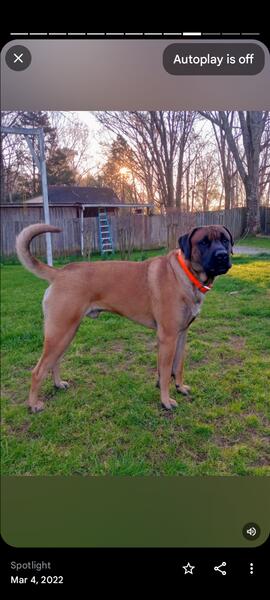 message ambulls about this ad Male mastiff/ boxer cross. 130 lbs and 4 years old. I am rehoming due to my health issues. He is a good dog. Has been and inside dog. Love to fetch ball, and has great drive. I also have an XXL cage, tug, and bite sleeve never used that can go with him. Text for more questions 334-316-8885 |