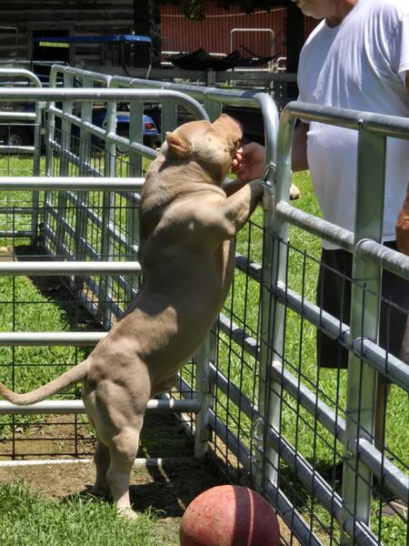 message wrrrs9339 about this ad DESCRIPTION: Very thick American Bully Gender: Male Price: 2 000 Age: 18 months Size: Standard Weight: Apox 95lbs Color: Lilac Good with children & other animals Very loving and easy going personality Very healthy and up to date on shots. To be sold as pet only- he will be nurtured first Looking for loving home environment not to be kenneled Price is negotiable * Grand Champion Bloodline |