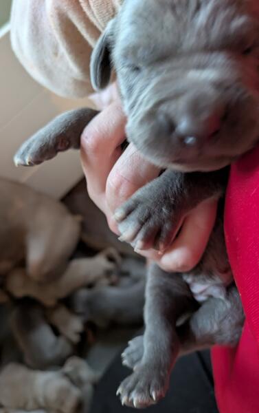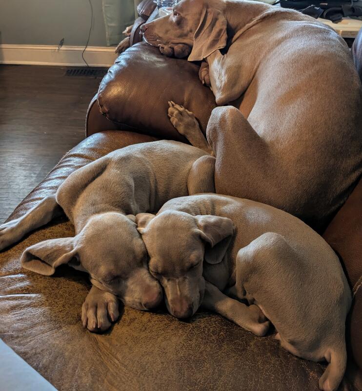 message hopeslegacyweims about this ad both silver and blue available. Tails and dewclaws done. shots and dewormer done. Mom, Dad, Uncle, Grandpa, and great grandma in House. Were a family of weims! Great Grandma is silver and white 11 year old. Grandpa is a blue 8 years old. Mom is a silver 3 year old. Uncle is blue. |