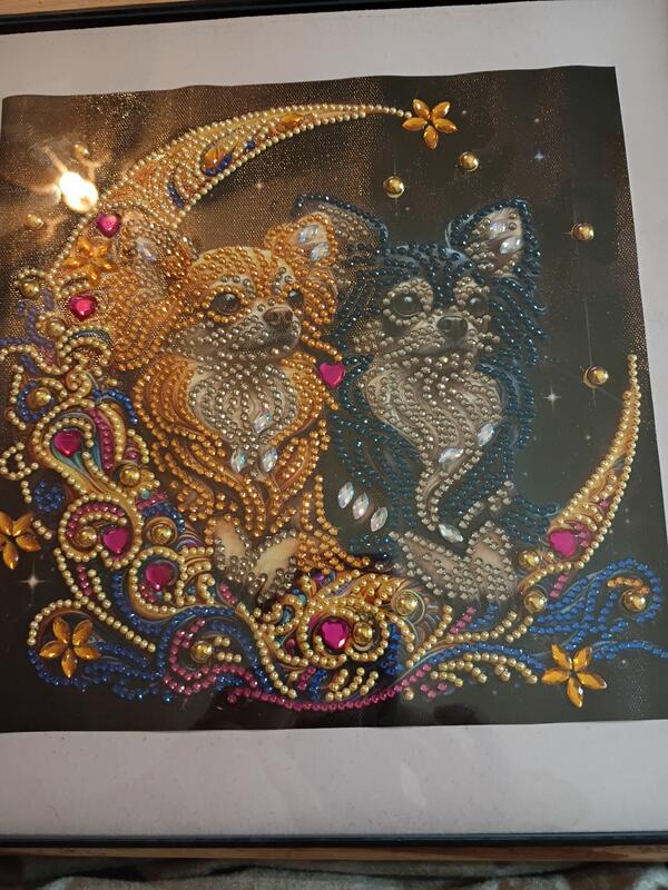 Handmade Chihuahua diamond painting. It has been rolled and sealed and in frame. Asking $25