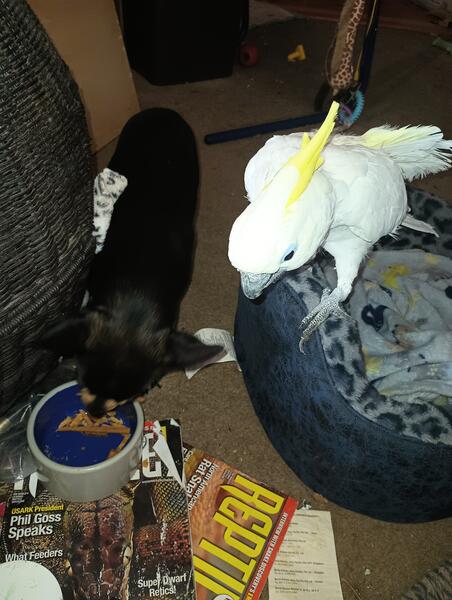 message songsbirds about this ad Bubbles is lovely bird. Talks and sings alot, cuddles sometimes. His owner just passed so he is a bit needy. Like a kid. He likes to hide under a towel or little blanket.He has a big stainless steel cage. Alexandria. Folds for travel. He is a rare type. Very smart and he has his cage in a bedroom but can roam the house. He also has a big playpen on wheels that goes with him so he can come into the another room.he has a big personality thinks he is a sweet girl. In Gorgeous thick feather and great health. Local pick up Belt, mt. Cage is $2,700. Bubbles $3,400. $6,000 both |