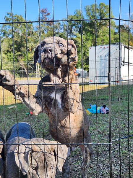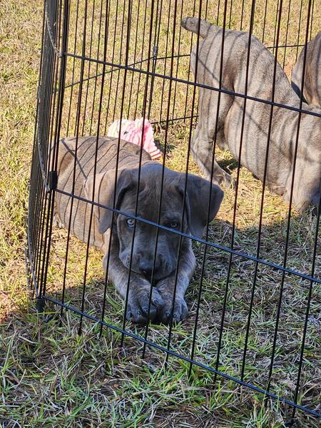 message njb9180 about this ad 2 big pups nd the 2 small pups 750 if interested message me and I'll give you my number for more info. EAR CROPPING WILL BE YOUR DOING IF YOU WANT THEM DONE IM LEAVING THAT UP TO THE OWNERS you have till the puppies turn 12 weeks to get them done. Puppies are ready to leave. Born September 2 2025 Blue brindle puppies mama is cane corso presa canario mix and dad is full breed champion sired cane corso 120-130 pounds boy |