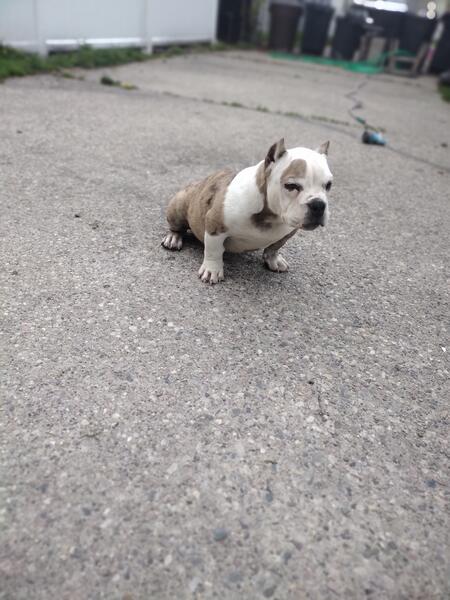 Tan and white merle/brindle boy almost 5 months old ABR registered