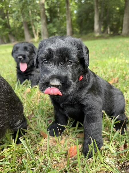 message angiefontana about this ad Litter of 7 beautiful and healthy black Giant Schnauzer puppies. AKC registered. (2) males and (5) females. Born 8/14/24 and ready for their new homes. Tails docked and dew claws removed. Have been vet checked, vaccinated and wormed. Sire and dam both are 80lbs. $500 deposit $2000 upon pickup (or prior to shipping) Shipping is at buyers expense. |