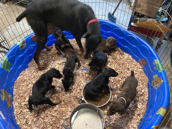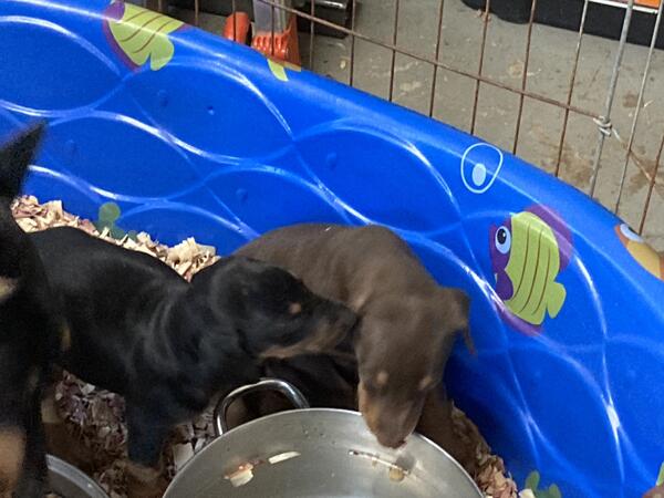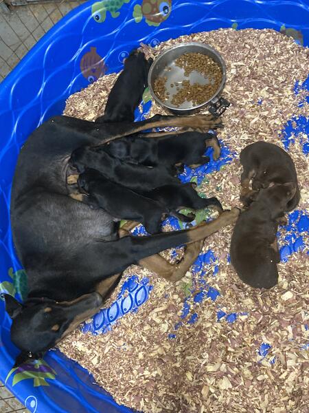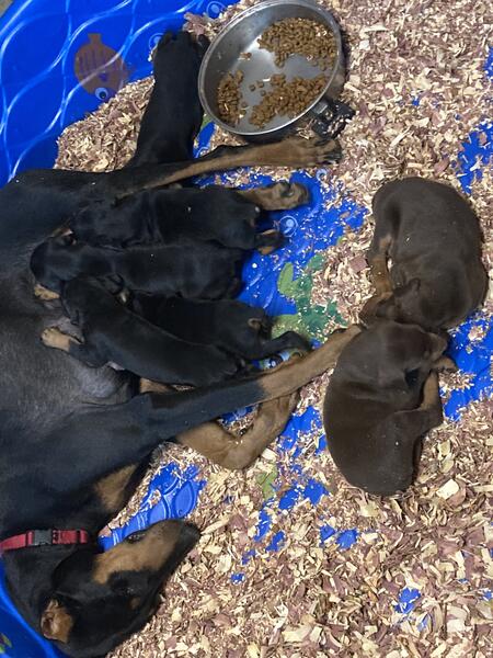 message rickysdobermans69 about this ad If your Looking for Doberman male puppy Look no more if are you looking for a breed that is loyal intelligent and beautiful look no more cause these puppies are the pick Dobermans that are ready for their loving forever homes we have one black/ tan male available call if your interested number provided below Contact us We have a litter of AKC registered puppies born august 1, 2024 Tails and dew claws removed Taking deposits first come first serve to hold your choice and pick when ready to go Pictures are at two days old before vet visit and at three weeks old with their mommy and at 6 weeks Healthy beautiful growing puppies Call or text with your interests These are nice looking ones too They have had their second shots and all scheduled wormings European bloodlines both parents on sites Call / message with your interest 828-776-9475 I will send updated pictures |