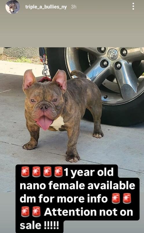 message tripabulls23 about this ad 16 momths old Had there 1st heat Commingg back in soon Playfull & sweet Blue brindle Nano1500 slightly Neg 6four6three3one9seven1zero |