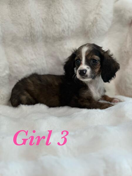 Mini long hair brindle girl. Super sweet cuddler loves kids text for info 352-512-1150