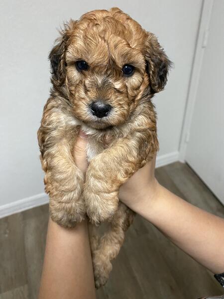 message whoodles about this ad 50/50 Whoodle, half Soft coated wheaten terrier half miniature poodle. Hypoallergenic, non-shedding, easily trained, very smart and loveable breed. Will be 15-20 lbs full grown. Dewormed and first set of shots. 1 male, contact for more info. |