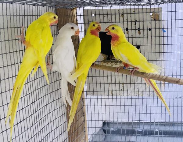 Lutino pair of princess of Wales young available for rehome with DNA . 818-929-2563 Singh.