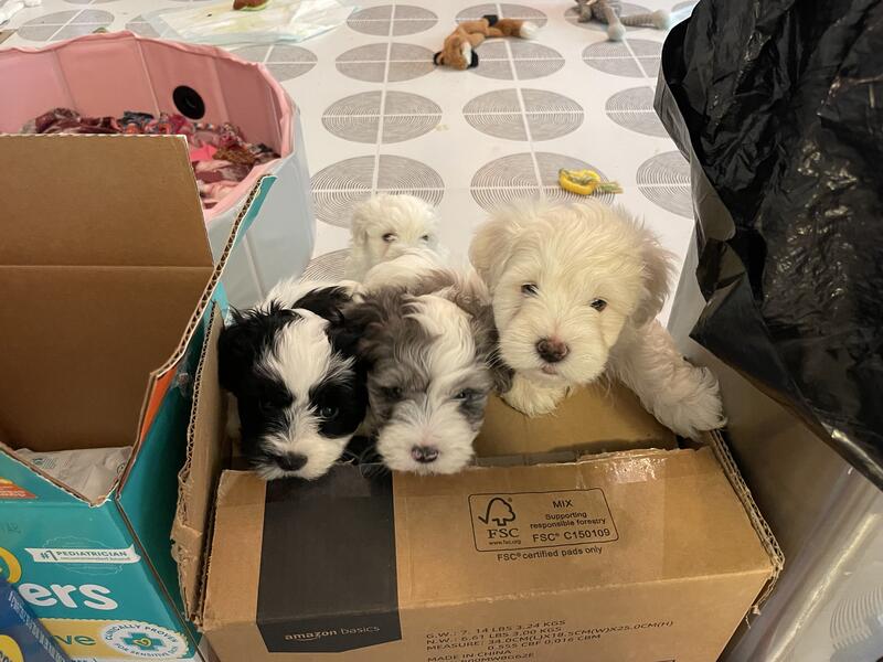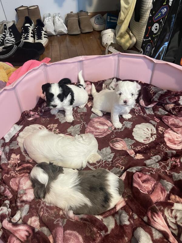 message ebee39180 about this ad Adorable 6 week old hypoallergenic male Mauzer puppies. Mom is a full-blooded 12 pound Merle Schnauzer, and dad is a full-blooded 9 pound Maltese. They were 6 weeks old on June 5th and have NOT had shots or been wormed. Well leave that to the new owners when establishing the new vet. Theyve never been outside so no chance of Parvo, and have been handled by kids every day so they love children. They are eating softened puppy food and use puppy pads most of the time. There is a rehoming fee to ensure they go to good homes. Available are a solid white boy, a black and white boy, and a Merle and white boy with blue eyes. Chesapeake, Ohio |