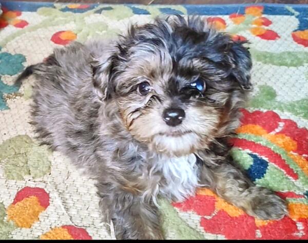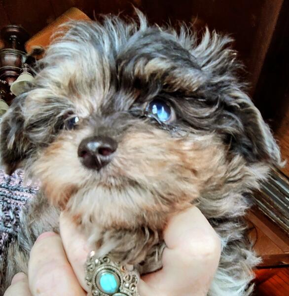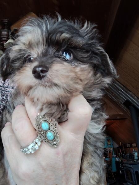message ktswalkin about this ad 10 weeks old, Mini-Aussiedoodle, male, blue-merle coat & one blue eye, was rejected at health inspection for an undescended testicle & small soft spot on head (fontanelle both are minor issues. Will mature at only 15-20lbs! He is fully vaccinated (2x dewormed (multiple times & microchipped. Located near Wabash, IN. Can drive up to an hour to meet, if it means getting this little guy into a great family home! |