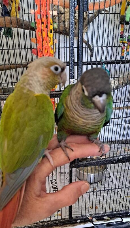 message rachelseden about this ad Pair of conures, dark one is around 3 years old, lighter one is around 2 years Not seed. They MUST go together, they are bonded. Darker one is hand tame, lighter one is not. Darker one can be nippy. Cage/accessories are included in price, its a great deal! Cage dimensions without legs is 47" tall, 37" wide and 23" deep. |
