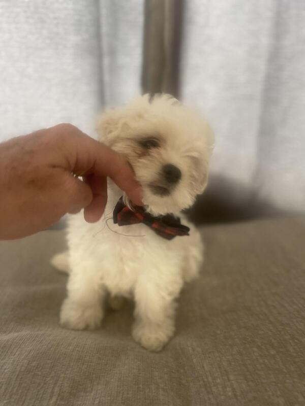 message refitz about this ad Lhaso Apso & Shih Tzu very intelligent mother of 12 lbs with DNA papers, Father is 100% Maltese and is 9 pounds with papers. The perfect lap dog and ready for their new forever homes on 6-10-24, I have reel and photos of the pups on my Facebook Page "Gene FITZgerald" page has puppies on the cover currently. These pups are raised in a family home and have been very well socialized at church, restaurants, parks and more. They enjoy car and motorcycle rides with us as well. They come with1st shots, weened, wormed, a bag of current dog food and a toy they like. They are also crate trained for night, and are well into the process of potty training outside. I can send you reels upon request of you can just go to my facebook page and look for my reels there. |