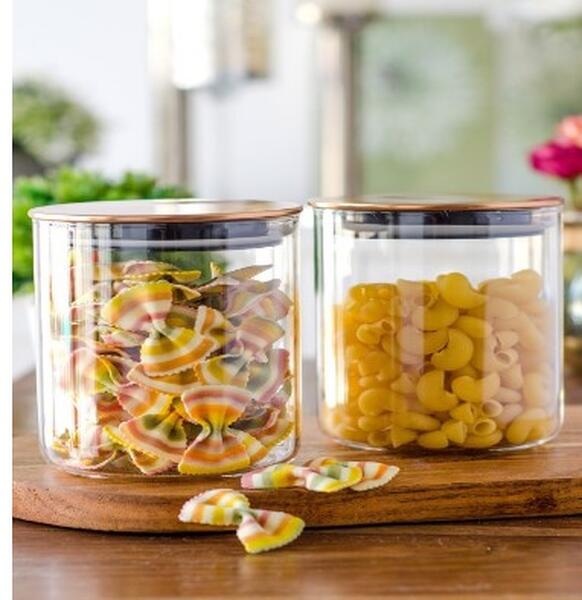message rohinee about this ad Product Code: 12430738 Set contents: 2 Jars with lid Type: Food container Colour: Transparent and coppertoned Pattern: Solid Material: 100% Borosilicate glass Capacity: 660 ml Features: Theses jars are durable, clear, scratch resistant, not to mention stylish Made from 100% Borosilicate Glass, these jars can be put directly in the oven or microwave (without the lid) Dimensions: 12.3 cm x 10.2 cm (height x diameter) each Capacity: 660 ml Store and elegantly display foods in borosilicate glass jars from GOODHOMES. The jars can be used to store anything from pulses, grains, pasta in the kitchen to dry fruits and snacks in your living spaces. 100% Borosilicate glass httpsmyntr.it/xKKBK4x |