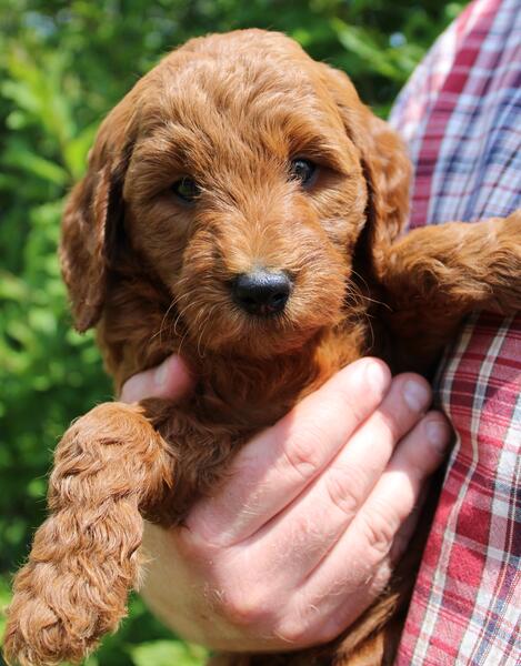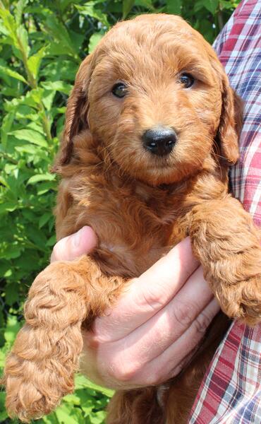 message eaglevalleypuppies about this ad Twix is a sweet red Goldendoodle puppy who is looking for his forever home! Anticipated to be 25-35 lbs. full grown. He is a sweet boy raised in our home with therapy training in mind. Held by kids and adults daily, socialized and desensitized to noise. Check out pictures and individual videos at httpseaglevalleypuppies.com Call Sara at 715-210-8631 to adopt Twix into your home today! |
