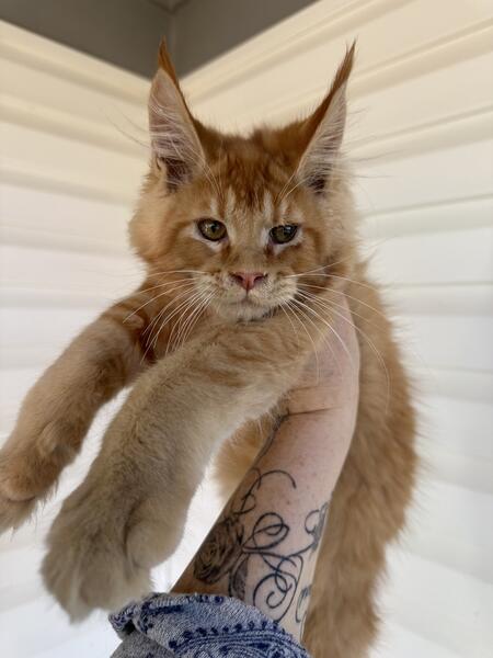 message mainecoonlegion about this ad Beautiful high quality Maine Coon female in a gorgeous red color. Born 9/29/24, up to date on shots, deworming, vet check-ups, spayed. One year health guarantee! |