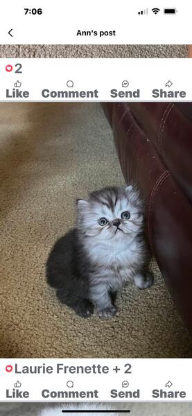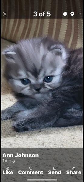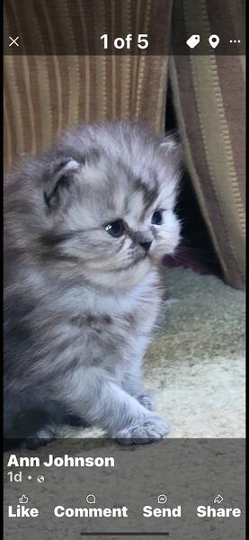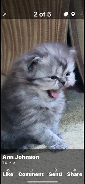 message nnjhns4475 about this ad This beautiful girl was born on June 30th, 2025 to a silver shaded doll faced mom and a stunning extreme faced blue Persian Dad. She has the most sweet personality and is a little love bug! She has 2 litter mates that have found their new families. All babies come vet checked, dewormed, first shots and a health certificate. I have enclosed photos of both Mom and Dad. If interested or you have any questions, please feel free to message me. She will be available in September. |