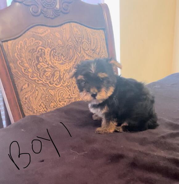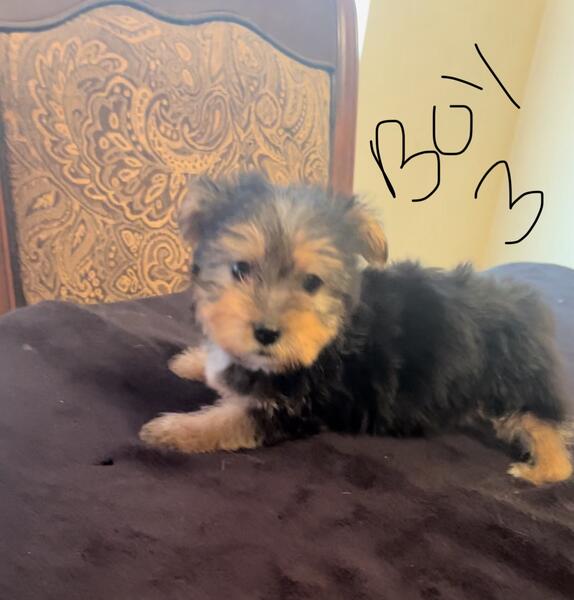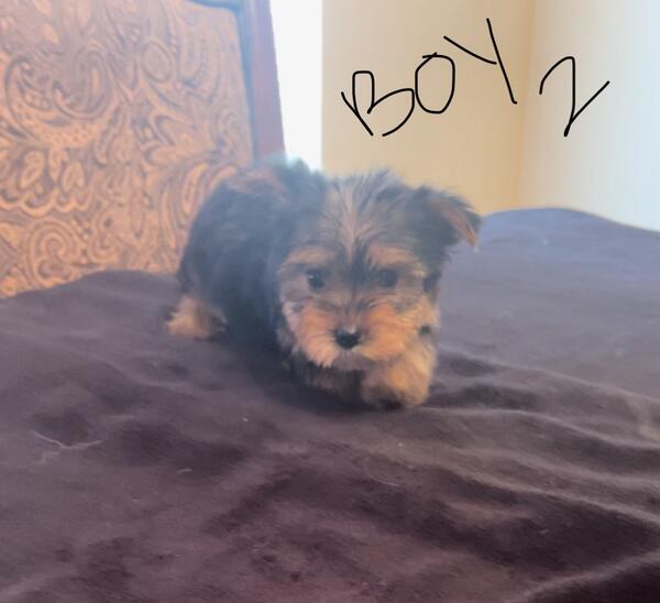message bratphobic about this ad I have four adorable puppies that need homes. They are ready to go now. Mom is a traditional standard size yorkie (12 pounds) and dad is a silver traditional (5 pounds The girl and the smallest boy will be around (5-6 pounds) and the other two boys will be between 7-10 pounds. They have been dewormed and given first shot by me. |