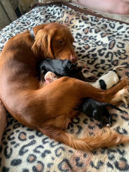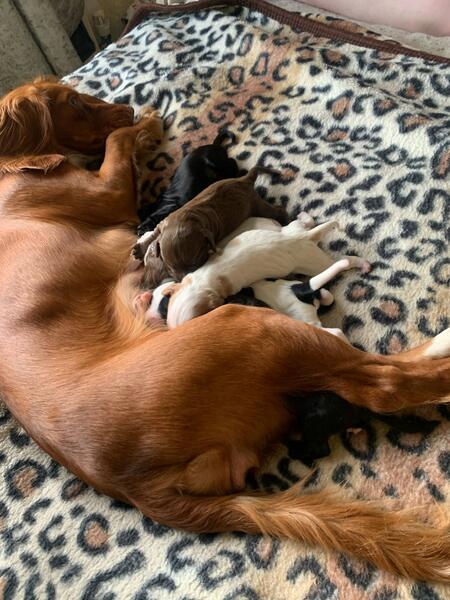 message sprocker about this ad My beautiful fox red cocker spaniel.narla has given birth to 7 beautiful puppies Born on 27th April and ready to leave on 22nd June they will be microchipped and health checked by the pick up date 4 boys 3girls All feeding really well off mum |