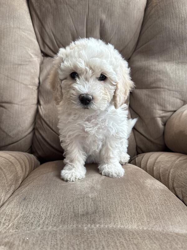 message crllwc4320 about this ad Teddy Doodle puppies are here! Three white/ cream and three brindle, one cream. One left of the seven born. One white female. Mom is a Zuchon. Dad is a miniature poodle. Puppies will be ready to go to new homes on December 9th. They will have first two shots, two dewormer, and Bordatella vaccine before they go to their new home. $200 delivery fee to any major airport in the continental US. Asking $200 deposit to hold a puppy. |