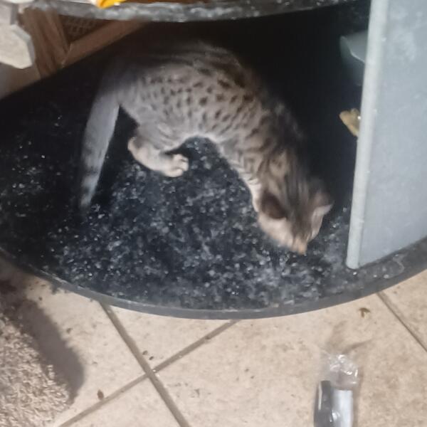 message supereasyshop about this ad Savannah kittens Purebred F-5 generalation 1 solid black markings male 1 silver and black markings male Call 216 225 4282 Ready to go to new home - REDUCED PRICE Mother brown and black markings laying down Father silver and black markings standing near broom |