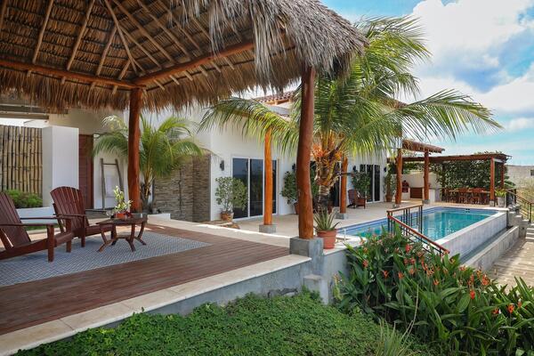 message homesinparadise about this ad Are you searching for a home that offers everything youve been dreaming of? Look no further than this stunning Playa Remanso Oceanview home in San Juan del Sur, Nicaragua. Nestled on 1,460 square meters of land, this meticulously maintained beach house offers breathtaking views of Playa Remanso Bay. Completed in 2020, every detail of this home was carefully considered, from the imported Italian floor tiles to the infinity-edge lap poolthis house truly has it all. With three spacious bedrooms and two bathrooms, the home spans 2,400 square feet of indoor living space, plus additional outdoor areas such as patios and decks. As you step through the front doors, youll immediately be captivated by the sweeping ocean views. The open-concept living and dining areas flow seamlessly, offering ample room for both dining and entertaining. The well-equipped kitchen is perfect for preparing delicious meals and features a refrigerator plumbed to provide constant drinking water via a 3-stage RO system, which also supplies water and ice to the house. The kitchen island, seating six comfortably, is the perfect spot for enjoying a meal or watching the culinary action unfold. Designed for privacy, the Playa Remanso Oceanview Home features guest rooms on one side and the primary bedroom on the other. The main guest room offers a queen bed and sliding glass doors that open directly onto the pool deck, while the second guest room is cozy with built-in bunk beds. Both rooms share a full bathroom with a walk-in shower. The primary bedroom is a true standout, with sliding glass doors that open onto the pool deck, allowing you to take in the spectacular view from the comfort of your bed. It also includes a custom-built workspace, ample closet space, and a lock-and-leave area for the owner's personal items should they choose to rent out the house. The attached primary bathroom is equally impressive, with double sinks, a custom-poured concrete bathtub, and an outdoor shower that enhances the experience. The outdoor space is just as remarkable as the interior. The infinity-edge lap pool invites relaxation, while the poolside dining area for 8, built-in smoker, and yoga/meditation platform provide the perfect setting for outdoor living. The yard below the pool is ideal for activities like cornhole, adding to the propertys entertainment options. The entire property is fully paved, enclosed with an electric gate, and includes covered parking for 3 vehicles. Additional features of the home include: Solar power system with 18 panels, two inverters, and 4-5kW lithium batteries 4,500-gallon total water storage, divided into 3 separate 1,500-gallon tanks, housed in a dedicated storage room Aqua Sauna whole-house filtration system with UV light Full-sized laundry room with washer and dryer Fully furnished and turnkey home Smart Home capabilitieslights, fans, and more controlled via voice commands or Google Home and Nest Extra storage in a bodega/workshop/solar room Location-wise, this property has it all. It offers privacy while boasting stunning views of Playa Remanso Bay, and its strategically positioned so that neighbors are out of sight. The beach is within walking distance, perfect for surfing or enjoying a meal at beachfront restaurants like Lainup Bar. Additionally, the home is just a short drive from the Costanera Highway, putting San Juan del Sur and nearby beaches less than 10 minutes away. This turn-key property comes fully furnished, including everything from furniture to bedding, so you can simply move in and start living the dream. The Playa Remanso Oceanview Home is the perfect blend of comfort, privacy, and luxury. USD $629,000 Bedrooms 3 bedroom(s) Baths 2 bathroom(s) Lot size 1,460 Sq meters Location North of San Juan del Sur message homesinparadise about this ad |