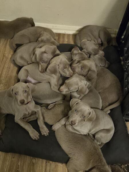 Weimaraner puppies for sale 8 boys and 1 girl left. I have mom and dad, AKC registerable . Ready now