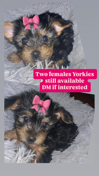 message demetres about this ad I have two female Yorkies left. They are $800. I do require a deposit of $100 to secure a puppy. And the remaining balance $700 is due at pick up. Youre more than welcome to pay or make payments on the puppy up until the pick up day. So let me know which way or route you to choose to decide. And I can also email you a contract. ONLY have two females left |