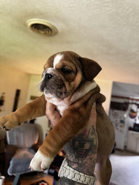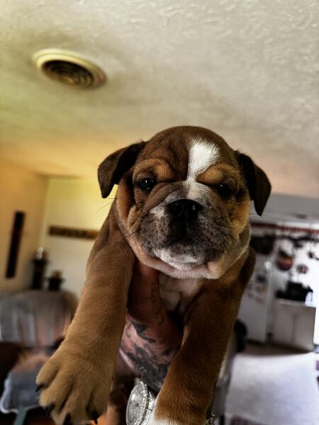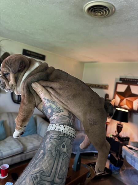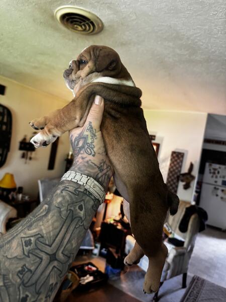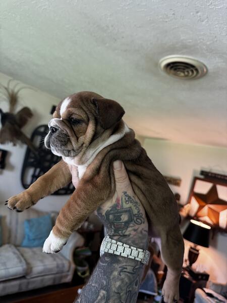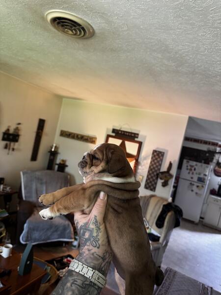 message redskyebulls about this ad Eight week old English bulldog from championship bloodline dad is the famous TONKA TRUCK in photos above and mom is mid qeeeny akc registered paperwork in hand, eight weeks old first shots health check cleared by vet Dayton, Ohio red SkyeBulls my name is Steve (513) 291-1081 text or call me |