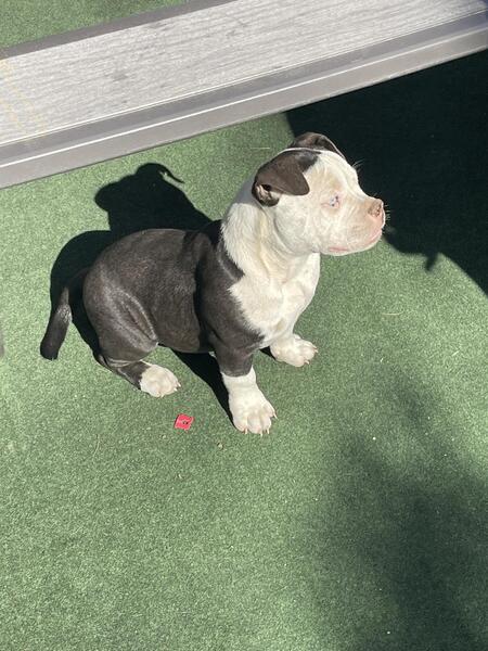 3 month old male bully update on shots & ready for a new home. Dad on site