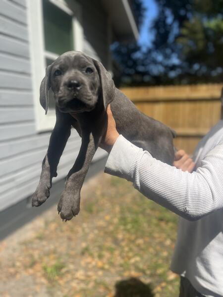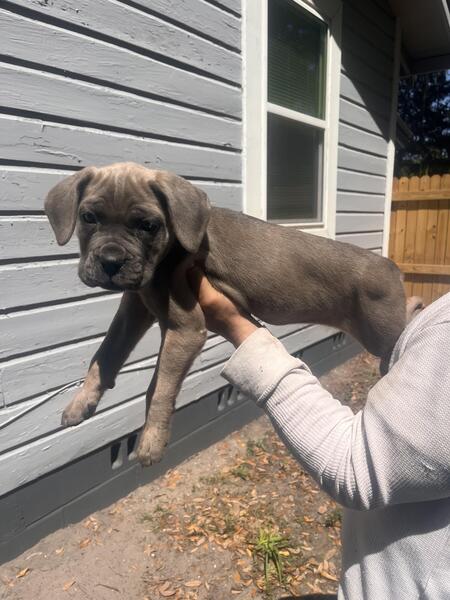 message canecorso77 about this ad Discover the joy of welcoming a Cane Corso puppy into your family! These puppies arent just pets; theyre future guardians and lifelong companions. Heres why they stand out: We have 5 puppies; 1 male and 4 females. Fully registered with ICCF, complete with health certifications. Born on January 19, 2024, already started on potty training and socializing. Tail docked, dewormed, and vaccinations up-to-date. Your Puppy Pack Each puppy comes with a take-home package including all paperwork, preventative medications for fleas, ticks, and heartworms, breed information, and a detailed 4-generation pedigree. Meet the Parents Sire: A robust blue brindle, 120 lbs, ICCF registered. Dam: A sleek jet black, 110 lbs, dual AKC and ICCF registration. Ready for a loyal, loving addition to your home? PM us now for more details and exclusive photos! Email: carahkowalchuk@gmail.com or give us a call at 3526721624 to speak with Carah. We are located in Ocala, Florida Let one of these charming Cane Corsos become your newest family member today! message canecorso77 about this ad |
