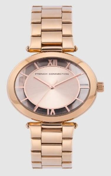 message prerana about this ad Product Code: 12360894 Display: Analogue Movement: Quartz Power source: Battery Dial style: Solid round stainless steel dial Features: Reset Time Strap style: Rose Gold-Toned bracelet style, stainless steel strap with a foldover closure Water resistance: 30 m Warranty: 1 year Warranty provided by brand/manufacturer Comes in a French Connection box Show off this lovely French Connection watch with a simple flick of the wrist. When you have dinner plans with your friends, style this rose gold piece with a trendy dress and patent heels. Case Size:34 mm httpsmyntr.it/dGfk5hj |