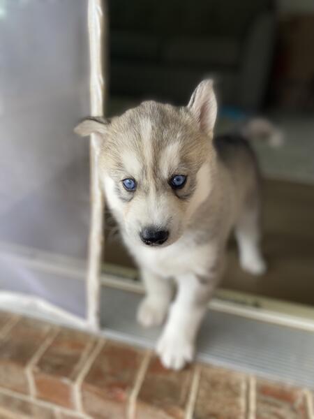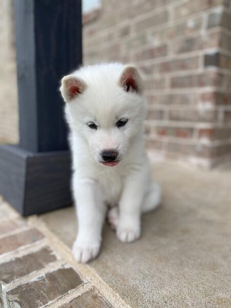 message petersenlt about this ad We five Siberian Husky puppies born on 5/10 and available for a new home on 7/12. There are four males and one female. There is one solid white male and three males with fawn, black and white markings. The female is solid white. Each one has a slightly different personality but they are all very sweet and very playful. Parents are on-site. Located in the Northwest Arkansas area. Message me for more info |