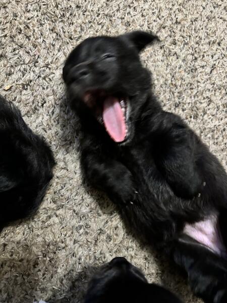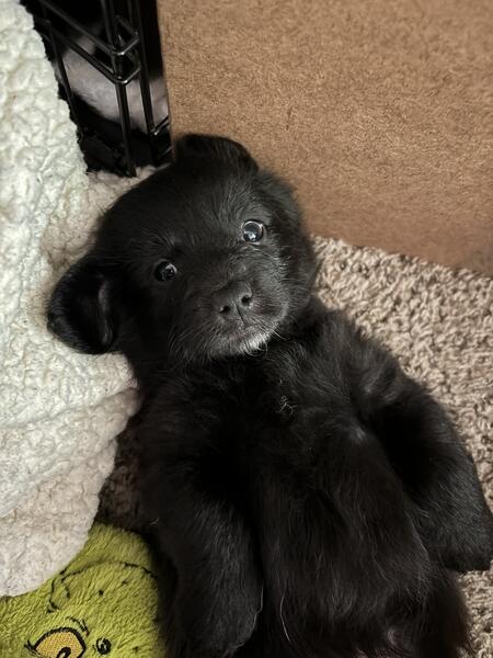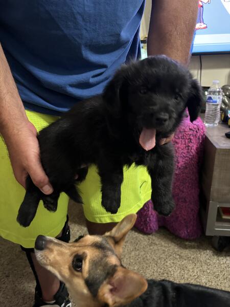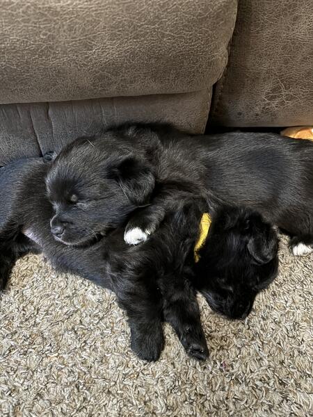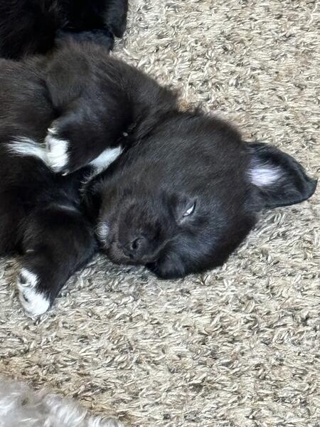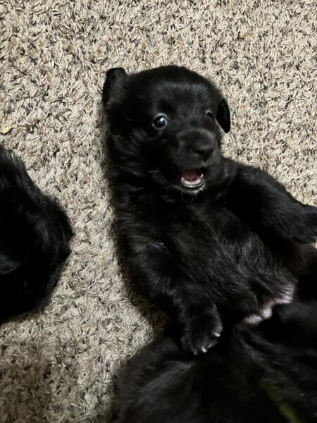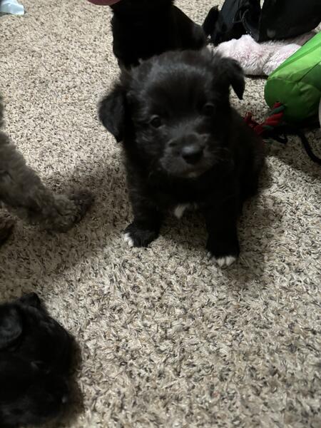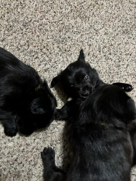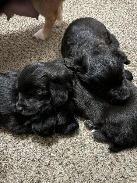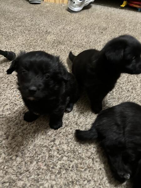 message cynthiaann about this ad Mr.Green - MALE - all BLACK with WHITE on chest, chin and all 4 paws. Mr. Blue - MALE - all BLACK with little WHITE on chin and chest. Ms. Yellow - FEMALE- ALL BLACK. Very little white on chin. All pups live with their mom and dad. Great around kids. All pups are pee pad trained. (Some accidents happen) Working now on outside potty trained. Two round of shots given. Dewormed. Born on June 1. More pics and videos available. Will be available Aug 10 at 10 weeks old. Mom is a Penrose Welsh Corgi. Dad is an AussieDoodle. |