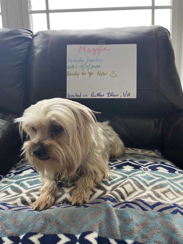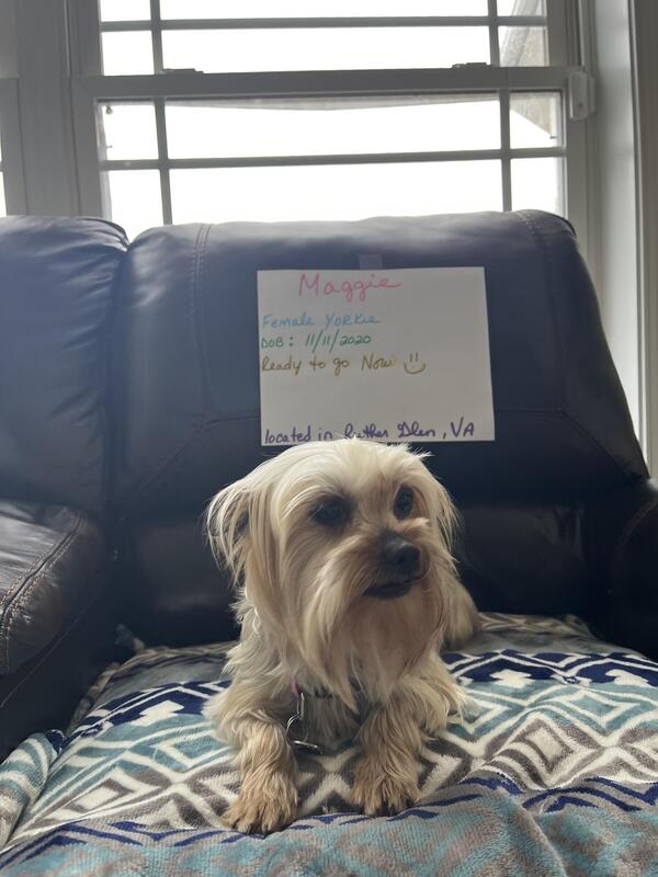 message marie3marie about this ad All adults are housebroken & current on their vaccinations. * I have two adult female Yorkie adults available at this time Name ~ Breed ~ DOB ~ LBS * Mollyy Star ~ Yorkie ~ 4/5/21 ~ 6.5 lbs * Maggie ~ Yorkie ~ 11/11/20 ~ 8.0 lbs * I might also have one adult Maltese female available at the end of June or July . * I'm located in Ruther Glen, Va 22546 I have several adults available, so if your interested in any of them, text me for more pics & videos of them. thanks Marie text ~ me~ @ ~ 210 ~ 584 ~ 8896 |