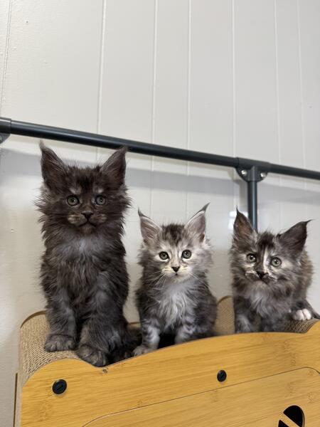 message kittycoons about this ad Kittens are vet checked, up to date on vaccinations, dewormed, microchipped and spayed/neutered before going home. TICA registered, parents DNA tested and clear heart echos. 30 day Trupanion health insurance, 7 day health guarantee, 3 year genetic guarantee. $3000 females $3500 males Website: KittyCoonsMaineCoons.com Facebook: KittyCoons Cattery |